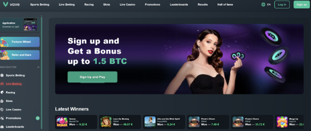 Launched in 2022, Vave is a mobile-friendly crypto casino. It offers slots, table games, live dealers, and sports betting all in one platform.
