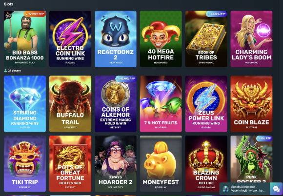 Slots take center stage. You’ll find classics like Wolf Gold and Gates of Olympus, along with whatever the latest trend is this week. Not sure if it’s your vibe? Play the demo first. No pressure, no coins needed.