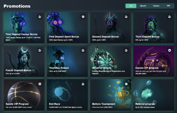 - Sports bettors: 100% match up to 1 BTC to boost your first play.